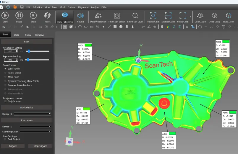 TViewer is professional 3D software designed by Scantech to power its optical 3D measurement system TrackScan series. Thanks to its advanced image processing algorithm, it can efficiently, accurately, and conveniently capture 3D data, greatly enhancing work efficiency.